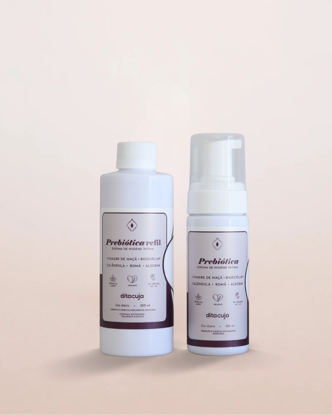 A Espuma Prebiótica Dita Cuja fortalece a microbiota, hidrata e protege a região íntima com ativos naturais, sem agredir o pH ou a barreira cutânea.